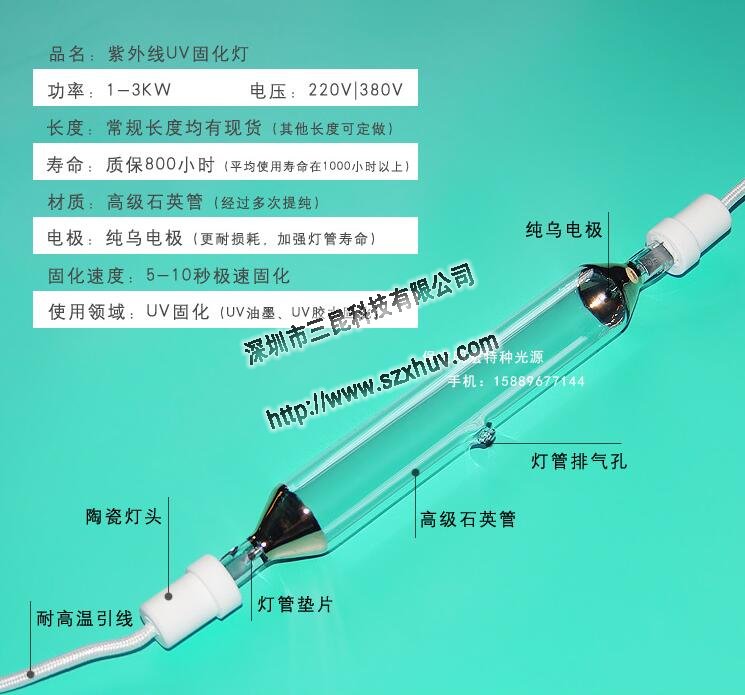 制造時(shí)可區(qū)分60W/cm.80w/cm,100w/com,120w/com,160w/com等單位面積的燈容量